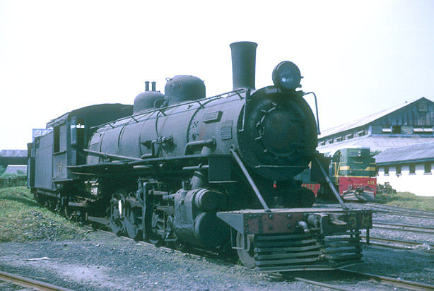 758 was a 2-8-2, built by Montreal Locomotive Works (75151/1947), based on locomotives at work on Canada's Newfoundland Railway. Named 'Quebec' it was at Ebute Metta in January 1967. (CS1) |