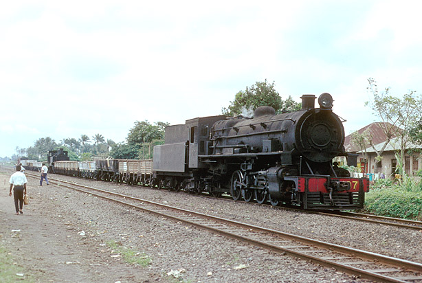 River class 107 'River Nun' is on a Lagos bound freight at Oshodi. Note the 0-8-0T cut into the train, presumably it was en route to the works at Ebute Metta. (DM) |