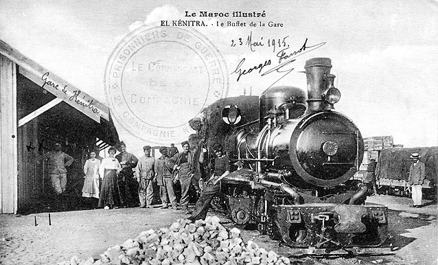 French controlled Morocco built its first railways as military lines of 600mm gauge from before the First World War. This splendid machine is one of a series of 2-6-6-0 Mallets built by Decauville in 1912 and probably the largest equipment they built for this gauge. It was posted from a prisoner of war camp there in 1915. (CW1 Collection) |