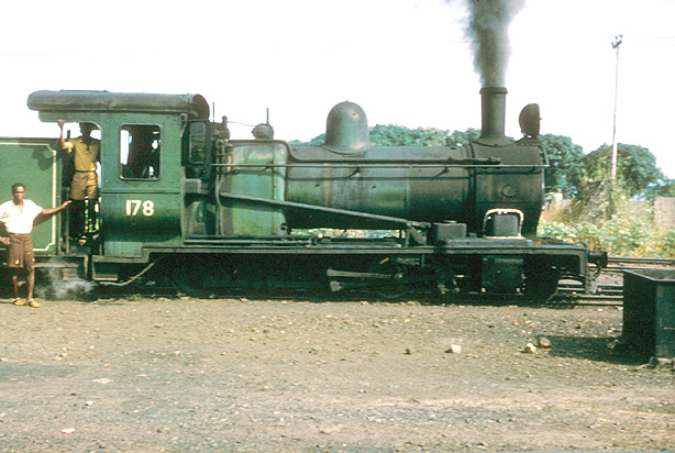 On 13th November 1964, Bagnall 4-8-0 178 was at Cline Town in Freetown. The locomotive blends Indian and African characteristics. (JW) |