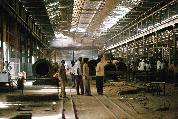 The scene in the main shops was a throw back to an earlier era. The 1981 TEFS report speaks of 'a treasurehouse of active steam hammers, steam-driven machinery and everywhere smoke, heat and noise'. (JA) |