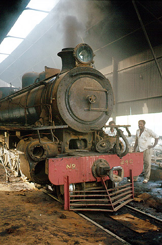 During the 1981 visit (when all but one of the pictures of the works were taken), the only locomotive seen in steam was Pacific 240 which was just completing a general overhaul. As can be seen, in this and the next picture, piston and valves were stripped down. (BA2) |