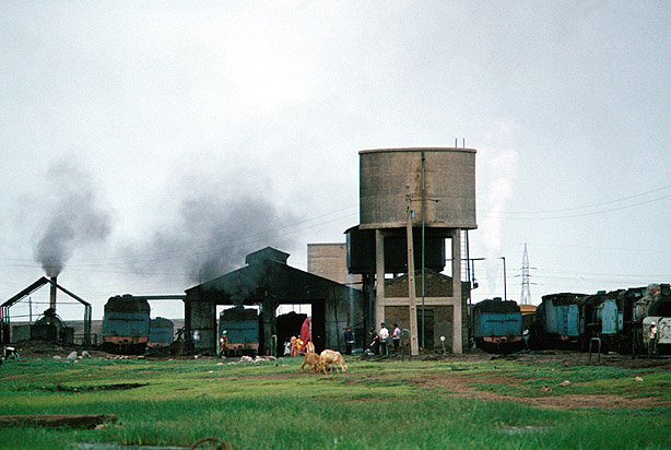Sennar Junction nominally had a large steam allocation, although at any one time, only a small number would be serviceable. This is a general view of the shed on 12th September 1981. (JA) |