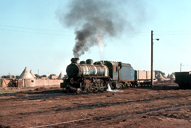 No artist could have created such a wonderful pattern of vertical stripes on the boiler of 247 as it comes of shed with its supplementary water tender on 6th February 1976. (RK) |