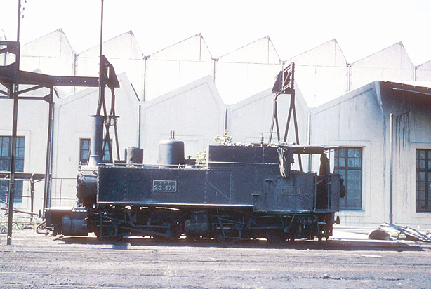 Out of use on the same day was this metre gauge Batignolles 0-4-4-0T Mallet 2-2-477 (1619/1906). All the railway's early locomotives were supplied by this company as they were initially responsible for building and operating all the standard gauge railways in the country. (JW) |