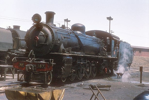 The 4-8-0 design was succeeded by 4-8-2s. 12th class 187 at Bulawayo on 30th September 1974 was one of a design that was considered an outstanding success and saw service for many years. (PM) |