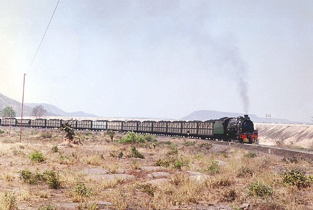 In later years, all the locomotives faced south out of Thomson Junction and were smokebox first on empties. Hence this picture of WCC 4 at Wankie with a set of fulls on 2nd October 1974 is unusual. (PM) |