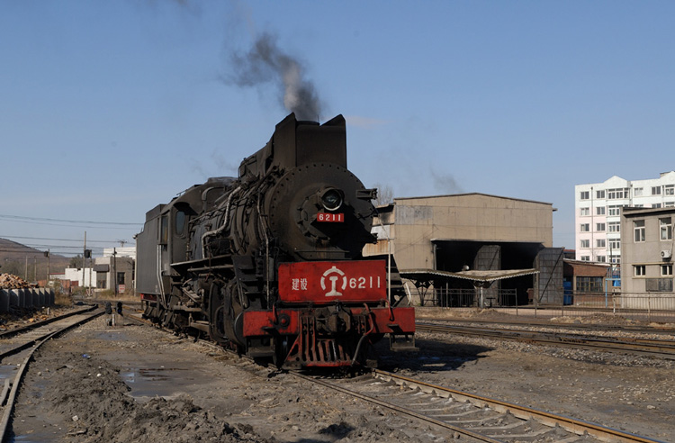 With no action this day at Nanpiao a quick trip to Bajiaotai was made. The line features a yard complex serving the nearby power station and a line, around 500 metres in length, from the north end of the yard area to the China rail station. Photographically not great, seeing JS 6211 on in excess of 50 empty wagons was impressive. JS 8116 was under repair in the depot with JS 6244 under steam. 6244 carries a Sujiatun 9/2009 overhaul date.