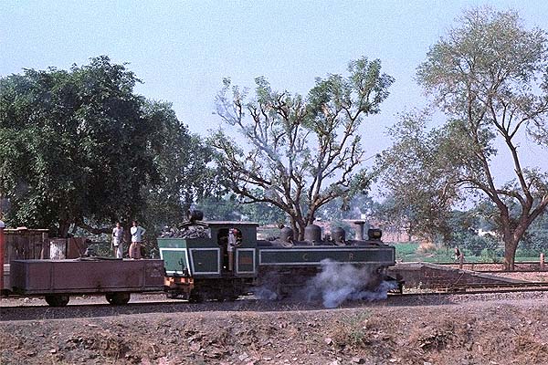 Ian Manning wrote:-“It was not a good idea to try and travel on a Central Railway main line by local passenger train. Perhaps it was not the railway’s fault, for it was trying to carry heavy traffic on main lines that were all too often single track, but still its locals gave the worst service of any in India: infrequent, crowded and so normally late that even the timetables gave up any idea of trying to provide branch connections. Travelling on such a train corroded one’s soul till the tombstone shapes of the surveyor’s stones along the railway boundary became the imagined memorials of travellers died of impatience.” You can read rthe whole article here. I found winter journeys could become tedious with lengthy stops, the carriage floor becoming strewn with empty peanut shells. During winter peanuts were a favourite snack in Northern India, vendors would sell them wrapped in old newspaper made up into a cone. The vendors’ carts carried small charcoal burners over which the peanuts had been roasted and smoked. Elsewhere on the IRFCA site you can find Ian Manning’s description of Dhaulphur, in it he writes “Under the pretence of providing connections to and from Gwalior and Agra, the Central Railway compelled them to use a shelterless bay platform at the main line station.” I wish I had this advice before my four ill-fated attempts to reach Dhaulpur by train to see the ng service there. Pretence of providing connections sums up my experience of Dhaulpur perfectly. With no hotel or decent waiting room the only other option was taxi, but this was outside my budget. One morning I was lucky to see a narrow gauge departure as my late running train slowly passed by. A ZA/5 class was departing whilst another ng tank in green and cream livery was also visible. The ZAs included some built as late as 1959 by Hunslet. The engines used the 2-8-4T arrangement, popular on Indian ng systems. I was not alone assuming these engines being relatively modern would be safe for some time; but they were replaced by surplus ZE class. 11th January 1982 sees a ZA/5 at Dhaulpur.