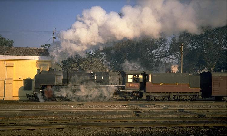 On 15th January 1989 the afternoon train to Bayana was originating at Idgah, rather than Fort as timetabled. I planned to ride the 13.30 departure to Fatepur Sikri, but the ticket office would only say “not running” and told me to catch a bus. I could see two WP being hand coaled on the depot by coolie labourers so I decided to stick around. WP 7669 came off shed at 15.00 and collected a rake of carriages, as passengers began to gather I decided this was a local timetable change. An hour later I was no longer sure and with tempers raised with some passengers shouting at the train staff, I made myself scarce.