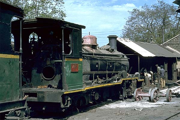 I had arrived at Kurduvadi in the early morning, 3 WGs were being warmed up for the days shunting duties. This year there were reservations available for the ng, a book being used to record details. The morning was warm and I sat reading until the local from Pandharpur arrived behind G 727, this (and 733) was one of the last two members of its class, built in 1939 by Bagnall. The other seven (725/726/728-632) were built some 10 years earlier by Nasmyth Wilson including 729 which was seen was light engine whilst ZE 101 was pilot. I was joined by three British fans who had ridden in on the train from Pandharpur and we visited the shed. The BS class locomotive was still listed on the foreman’s roster board, which had obviously not been updated for many years. Many F class were on shed, most (712 - 721) were built in Manchester by Nasmyth Wilson between 1926-9, although 722-4 were built as late as 1949 by Hunslet. A number had received new smokeboxes and had fireboxes renewed, they were being spruced up prior to transfer to Murtajapur. A new diesel shed was being erected as steam was supposedly in its last years at this location. The ZE class would be laid aside by the end of the year. F 723 is the subject of some heavy repairs, probably indicating it will be transferred to Murtajapur.