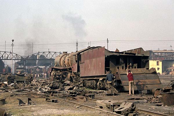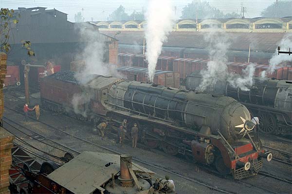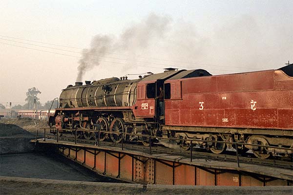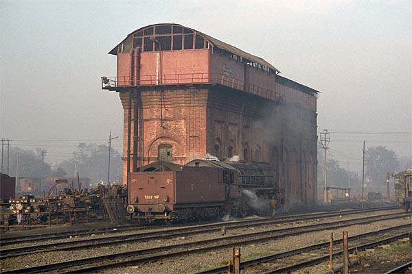 Heading to Delhi Junction my taxi passed the Red Fort before a traffic jam blocked the station, which was designed to look like a Fort. I joined the scrum to purchase a 2nd class ticket to Saharanpur (these trains did not include 1st class). When I gained the counter I was told there was a surcharge as 4545 Express was a “Super fast” what a joke! The total price was only 39 Rp for the 170 km ride. Steam was nearing the end and I found a driver showing a group of school kids how steam engines worked. The platforms at Delhi Junction are long enough to handle two trains and have crossovers near the middle of the platforms to enable trains to weave in or out or release engines from their trains to the centre track. The metre gauge had its own system of platforms. I watched a YG depart on a 7 coach local to Pallam, the train was heavily loaded, another YG arrived on a similar train; both engines and carriages were in poor condition. The station was crowded with troops waiting for trains to take them to the Punjab and to Kashmir where India was fighting a civil war on two fronts. Mountains of kitbags were strewn around, rifles stacked with soldiers guarding them. An office for Army Movement had posters plastered on it warning troops to be alert and not accept drinks as they could be poisoned and beware of bombs. WP 7626 was assigned to work 4545 to Saharanpur. The engine was in poor external condition which was not helped when the crew resorted to tearing a loose piece off the Skyline casing to repair the firebox door. I rode in the front of the 12 coach train. On departure it was evident the engine had a major mechanical problem as every few beats there was a regular bang (not a clank) from one side of the motion. I was surprised the crew got this beast up to speed and kept it there despite the noise, I was rather glad not to have had a ride in the cab! Once out of Delhi the engine was forced to work hard and the stack talk remained loud throughout most of the journey overcoming some of the constant banging from the motion, the chime whistle was in heavy use. I had not bargained for it being so cold once the sun went down, the 2nd class carriages had no windows and there was a wind chill effect. The line follows the ex ng route passing through some appealing countryside with fields full of flowering canola plants, eucalypt plantations and green rice fields. Many birds could be seen in the fields, including long tailed parrots, a contrast to the scruffy egrets that wade through dirty water near the slums of Delhi. The arrival at Saharanpur was a stunning experience, I was in the right place but at the wrong time. As we pulled in I could see a well-lit depot adjoining the station full of steam locos, it looked inviting, but the station platforms were full of troops patrolling and the station offices were sandbagged. Passengers were made to queue by an army patrol before being escorted to the footbridge and frisked. The station had become a battlefront and I had no warning that the army was in occupation. Obviously a photo permit was of little consequence and I wondered why the troops were so primed. I was questioned by an officer who thought I was a journalist. I was told there was no way I was going to spend the night at the station and the town was under curfew. I was to be tolerated only until the next available train back to Delhi: the idea of riding north to Ambala was also out of the question, but as to why I never found out. The Punjab had been off-limits for a number of years due to an insurrection and recently there had been a bombing of a train to Ludhiana, but Saharanpur was well to the south. I had time to admire the superb station, a footbridge allowed you to overlook the shed with its lines of WPs and WGs, kindly spot lit by the army, who marched me back to the station platform. A WG stormed away to the north with its train rapidly receding in the night, I wondered if this was to deter people from jumping on board outside the secure limits set up by the army; it was certainly not normal practice for Indian trains to depart so quickly. A surprisingly well turned out WP, complete with a headlight director arrived from Lucknow on the long distance 352 pass, there was an engine change here before a Saharanpur loco took the train forward. The night was freezing and the waiting rooms were occupied by the army, I drank a couple of small chais, just to get something to warm me whilst waiting for the 22.50 departure to Delhi. This was train 314, a fast passenger with only a couple of stops to Baghpet Rd where it was due at 03.11. Then the train turned into a stopping passenger to Delhi. The engine was forced into some quick running accompanied by stack talk, as the engine chattered to the night sky in the open country out of Saharanpur. At Shamli (00.40-01.50) the carriages became crowded with milk carriers and their churns which were also suspended to the outside of the carriages. Arrival in Delhi was at 05.30 where the milk vendors joined others who had arrived from other destinations. Trains were standing in the platforms with their steam engines being released to head for the servicing point. I stepped over sleeping bodies wrapped in blankets or cardboard and paper to keep out the cold. A WP pulled in from the centre line to the second part of the platform on a train arriving from the opposite direction that we had come. I lingered to take in the action, two WGs and WPs were visible, at times like this the station could still generate the appearance that steam dominated the scene. I walked towards the exit stepping over sleeping bodies wrapped in a blanket or cardboard and paper to keep out the cold; their lives were remorselessly hard. I returned to Saharanpur for the New Year in January 1994, the station was more welcoming but the ride on 4545 had been another interesting experience when armed railway police herded the few remaining passengers into the front 2 carriages at Shamli