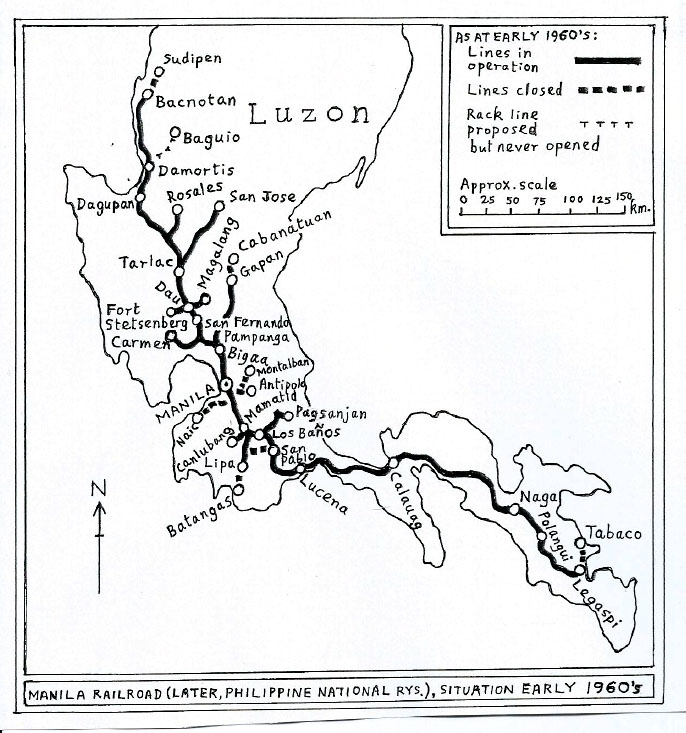 Click here for the other parts: There are maps of Luzon, Panay and Cebu at the end of the tale. The republic of the Philippines, not covered in the previous “Garland” piece, features south-east Asian islands – the nation comprises a huge number of them: fifteen or so, of greatly varying “meaningful” sizes -- the rest, tiny. This is a country which has, with one solitary exception, not drawn a great deal of notice from railway enthusiasts. Likely, I would feel, attributable to the Philippines’ being firmly in the USA’s sphere of influence – including their having been under actual US rule from 1898 to 1946, save for a World War II spell in Japanese hands, pleasant for nobody concerned. The US connection meant – broadly speaking – steam traction being eclipsed by diesel on the nation’s public railways, relatively early; so, come the time at which enthusiasts were in a position to go globetrotting in large numbers, the Philippines were not (one island aside) a prime steam destination. The medium-sized island of Negros – the single exception noted above – featured a large assortment of variously narrow-gauge agricultural / industrial railways – mostly, but not all, in the interests of the cane-sugar industry. Negros was basically discovered by the gricing community in the early 1970s, and afforded great pleasure to it for most of the following three decades – during which, the island thoroughly and remarkably “bucked the trend” of things worldwide, by its railways remaining faithful to steam, in delightful variety. A fascinating and colourful scene to read about, and revel in pictures of – and very many people went there and experienced these splendours first-hand. I was particularly taken with the island’s Insular Lumber Company railway, and its enormous and decrepit Mallet tender loco – a “hoodoo engine”, working on which many men had met their deaths. However, none of the Negros scene involved public-common-carrier lines; so after this brief salute to it, I’ll move on to elsewhere in the archipelago. The biggest-and-busiest Filipino public rail scene has always been on the group’s northerly and largest island of Luzon -- almost 800km end-to-end -- which contains the capital Manila. A close parallel here, with Puerto Rico a hemisphere away: both were Spanish possessions until the Spanish-American War of 1898, with railway systems initiated by the colonial authorities only a few years prior to the US’s annexing the territories as a result of the war. The concession to build and operate lines in Luzon was won by a British undertaking, titled the Manila Railway Company Ltd. The gauge chosen was 1067mm. Where gauges are concerned, Spain is famous as an “anything goes” country; one may speculate, however, on whether the choice of 1067mm were to do with the British connection, and / or so as to be in step with the use of this gauge by Japan and the Netherlands East Indies, neither of those lands hugely far away. As the name implies, the undertaking was seen as based on the Philippine capital city Manila, roughly at Luzon’s mid-point. The only stretch of the railway to operate in what turned out to be the few remaining years of Spanish rule, was the main line for 195km north from Manila to Dagupan, opened in 1892. With the US takeover of the Philippines, the MRC Ltd. set up a US subsidiary or “shell company”, the Manila Railroad Company, notionally to operate the railway; but basically “business as before” continued along British lines. Development, and indeed regular operation, of the railway was hindered for a few years, by guerrilla warfare waged against the US by locals who wished to run their own country, rather than exchange one set of foreign rulers for another – in a number of ways, a slightly eerie prefiguring of the Vietnam scene many decades later. When stability had come to prevail, the system was energetically extended over the period 1905 – 1915. The essential picture involved a main-line spine running far both to the north, and to the south-east, of Manila; plus numerous branches of various lengths. In 1917, the US colonial government of the Philippines took control of the Luzon rail system, ending the era of British administration and – largely – practice. For various reasons, the pace of expansion of the system slackened after 1917; but new lines did continue to be opened. A long-sought goal, worked toward from both ends, was the completion of the main line south-east from Manila, right through to Legaspi near the island’s south-eastern tip: an isolated section at that extremity was in fact opened in 1914 / 15. In the event, the Manila – Legaspi route was not finally opened throughout until 1938. By then, some of the system’s shorter branches had already been closed as unremunerative; track materials recovered from them, were used in construction to close the main-line gap. With further sections being abandoned consequent on the events of World War II; the “closures-and-also-new- construction” factor makes a maximum-extent route length estimate for the Manila Railroad, difficult. A source inferred as most probably from the 1940s, gives the largest likely route-length figure known to the author: about 1030km. British influence from the railway’s early days resulted in some British touches surviving to a late date, on a system which came to use mostly American methods. For instance, visitors in the 1970s found British-type train staff working still notionally in effect to ensure safe single-line operation; though in fact, by then employees were only “going through the motions” with the staffs, and in practice, American train-order regulation was what was happening. Given its original British concession-holders and operators, the MR’s motive power for its first quarter-century was mostly from a variety of builders in Britain (Scottish ones seemed to be conspicuously favoured). Tank locos appear