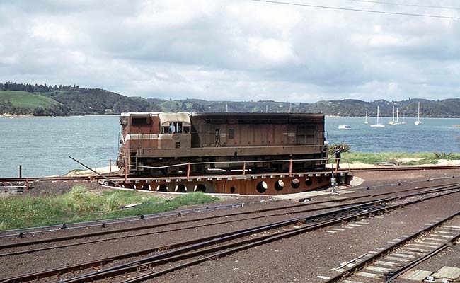 A spin on the turntable at Opua so this inelegant looking box called a railway engine would be facing the right direction for the trip back to Whangarei. It is an attractive backdrop though.