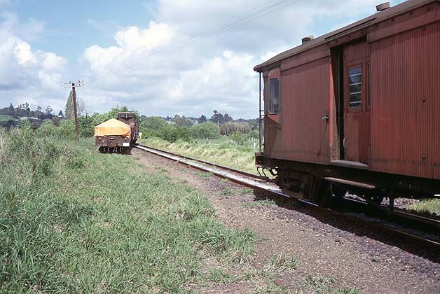 Taumarere lies eight kilometres from Opua and there we placed a loaded wagon into the siding: no it wasn't freight from Opua to Taumarere but from further south. For some reason it couldn't be shunted off on the way to Opua. Maybe the siding was in such a condition the Da wasn't prepared to venture too far down it and this was the easiest way to place the wagon where needed. Looking at the state of the siding I can't imagine many wagons had been left here recently.