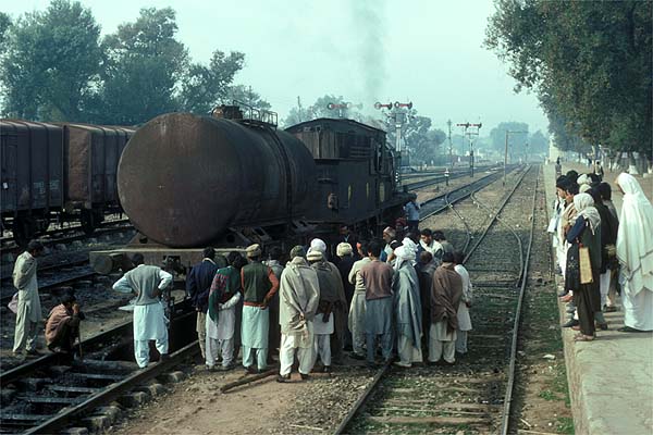 Refreshed in a fashion having enjoyed the first of many 'chais', we journeyed east to Lala Musa where we decamped in the middle of night. The shed here was empty and the yards seemed full of rusty and unwanted coaching stock left over from better days for the railway. Some time before dawn, SPS 4-4-0 2997 swept in from Malakwal and went off to be serviced. What was to be a long and memorable day for me started off slowly as the line south was flat and straight with just a few irrigation canals for interest. I was very much feeling my way with what I could get away with photographically and we were almost in Malakwal before I took the camera out. Our train was halted for an adverse signal, it was too good an opportunity to miss, never mind I would have to walk to the station afterwards.