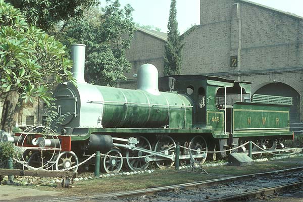 After the delights of Malakwal, I had a day in Lahore. Permission had been granted for a visit to the workshops at Moghalpura but no-one in the railway offices in town was quite certain whether photography would be allowed there. Experience elsewhere suggested it would be unwise to leave it behind at head quarters with my bags and so it proved. Of course 'Boxing Day, 26th December' was not a holiday in Pakistan, in fact I doubt that Christmas Day had been one either. Just inside the works area were two preserved locomotives, North Western Railway 4-6-0 448 and Scinde, Punjab and Delhi Railway 0-4-2 'Eagle'. Permission to photograph was readily given and if anyone had heard about the 'no photography' rule, they had conveniently forgotten it during my visit.