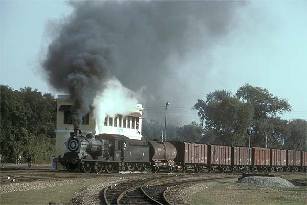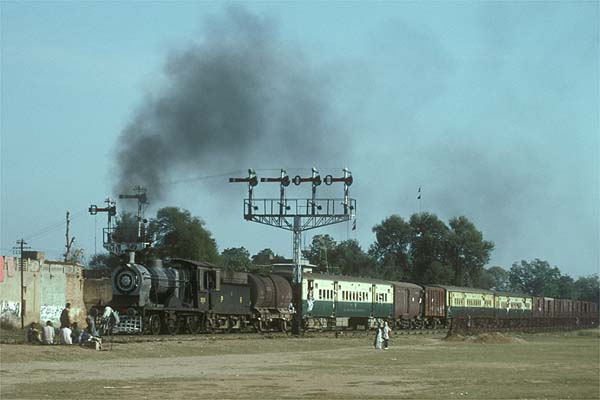 I took a late afternoon train up to Lahore and went overnight to Malakwal, the details are too deep in the memory to dredge. I had one last day with the SPS and SGS and this is 3159 leaving south past one of the gantries controlled by the south box on 2nd January 1993. The small boys playing cricket on the open area to the right next to me were too preoccupied with their game to strengthen their throwing arms by chucking the traditional stones at the visiting gricer.