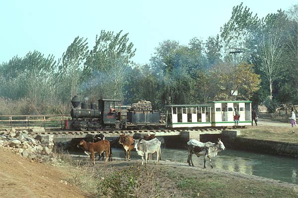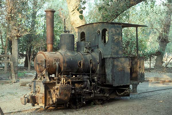By the time I got to Changa Manga on New Year's Day 1993 after my fourth overnight journey, I could barely keep my eyes open. The situation was embarrassing as a special train on the Forest Railway had been arranged for me the day before, but as today was a holiday, the normal tourist trains would be running but there would be no chance of a logging train. (For those not familiar with it, Changa Manga is a man made, irrigated forest, designed to provide a sustainable harvest of wood. It has a 610mm gauge railway system which still operates.) 0-4-0T Andrew Barclay 1763/1923 looked to be serviceable but was not in steam.
