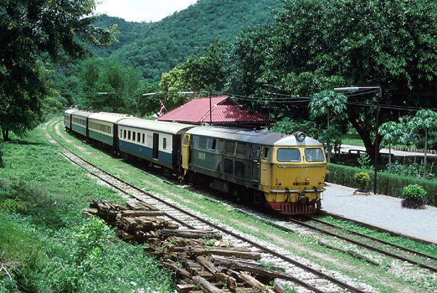 B-B 3019 was a diesel hydraulic, part of a batch of 27 delivered by Henschel in 1964. It was at Nam Tok, the terminus of the Kwai line, in August 1987. (RD) |