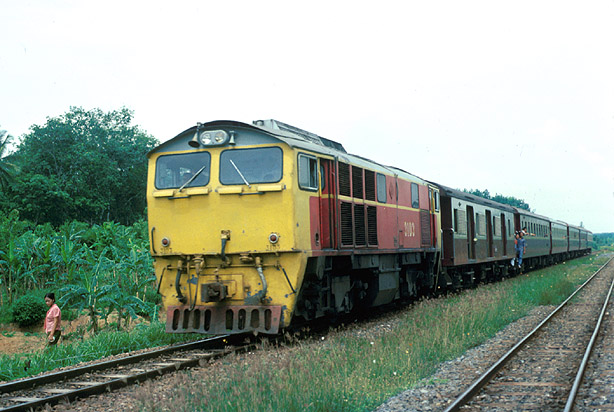 The next diesel hydraulics delivered were larger and heavier B-Bs from Krupp and Krauss-Maffei in 1969. 3103 was on a passenger train between Thung Song and Chumphon in June 1977. (RD) |