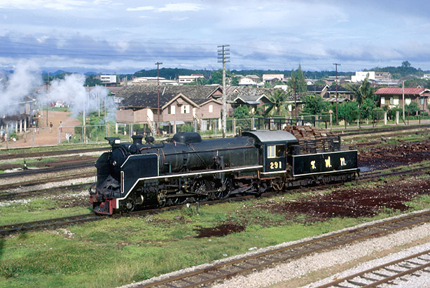 During the Second World War, the Japanese supplied a number of Pacifics to the railway. 291 at Haadyai in September 1973 was built by Nippon Sharyo in 1942, others by Hitachi. (RD) |