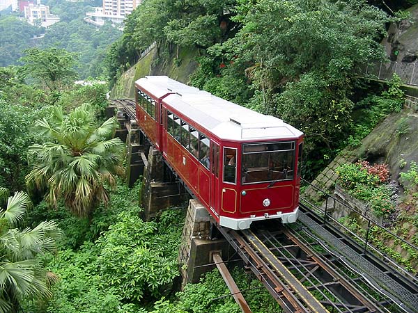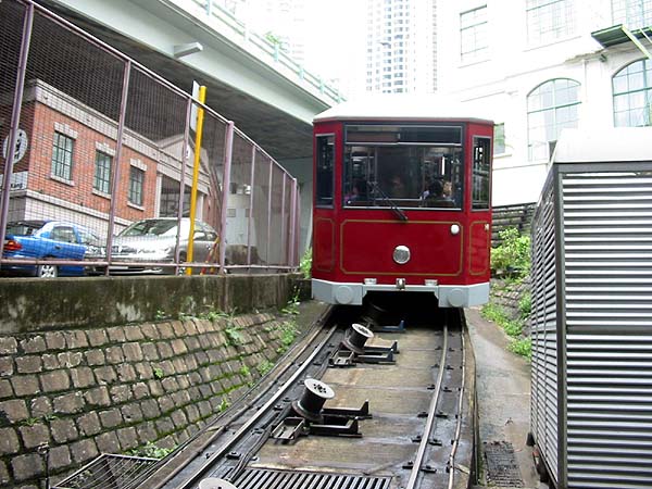 Not to be confused with the Hong Kong Tram, the 1522mm 1.5km long gauge Hong Kong Peak Tramway is actually a funicular which runs from just above sea level to near the summit of Victoria Peak from which there are some superb views of the urban area and and harbour. We rode it in 2005 and took a few pictures, it's an essential part of any visit. Official Website - http://www.thepeak.com.hk/en/ Wikipedia - http://en.wikipedia.org/wiki/Peak_Tram