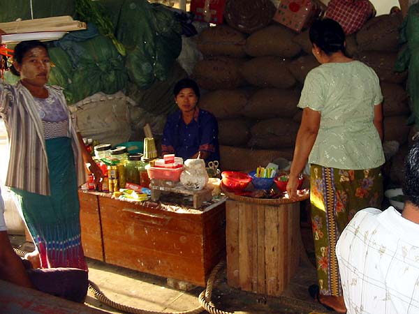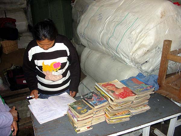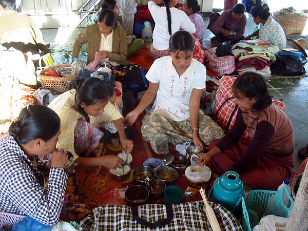 Snack bar: Self catering facilities: Even install a library: Snake's eye view of the well used toilet: Seriously, what cannot be shown is the friendliness of the people (especially the crew) on the boat, one of whom searched high and low to produce two well worn blankets when it was clear we were not sufficiently prepared for the cold nights on the river. Breakfast was a snip at U$0.30 each: Please, never lose your sense of humour even if the boat turned up originally 32 hours late and you have just been told you will spend a second night attached to a sandbank. As the brochure would say, three days and two nights for just U$ 7 each (food and drink extra) is a bargain. I will spare you the bruises on my back from trying to sleep 3mm above a vibrating steel plate .... More like this of my oddball lifestyle? Click here for Another Luxury Irrawaddy River Cruise Click here for Climb Every Mountain. Click here for a House in the Country. These are the individual (stationary steam engine) pages from the 2006 trip: