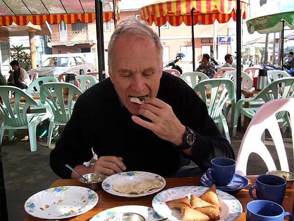 Tea, toast and beans - Burmese style - with samosas to follow: