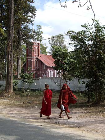 This is the third part of our 2009 Burmese Odyssey. To read more about our 2009 bash which includes many non-steam items, please see Rob and Yuehong in the Golden Land 2009. We arrived in Maymyo in the late afternoon from Lashio. It would have been a delightful stopover even if the train on to Mandalay arrived there at a more civilised hour than 22.40. We enjoyed a very pleasant morning wandering around the town which has some wonderfully preserved colonial era buildings and has a significant population of Indians and Gurkhas from the British army times - Burma's Defence College is situated here. The most photographed landmark is the Purcell Clock Tower, behind is the main mosque: