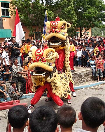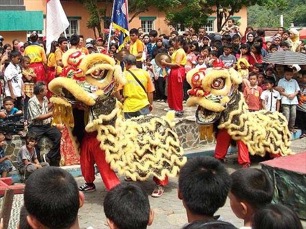 As a town which attracted many economic migrants, Sawahlunto is more multicultural than just about anywhere else in West Sumatra. On our way back from a bit of industrial heritage bashing we found a Lion Dance taking place outside the offices of the coal company. I'm not too sure what Mummy and Daddy Lions are up to in the second picture. The performers are not actually Indonesian Chinese, but they are sponsored by Chinese businesses in Padang.