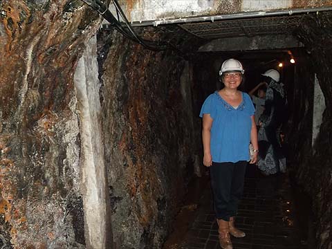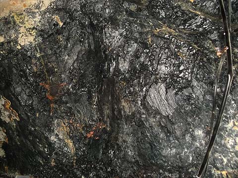 Some coal has been left where it is needed to support the roof. These days there is forced ventilation and the air quality is monitored. Apparently wagons were used on the level and there was some kind of conveyor system to get the coal out.