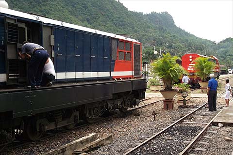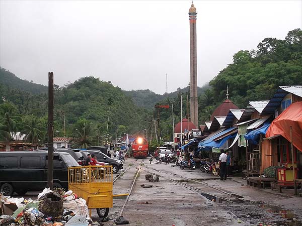 On the Friday, I have to say that the signs were not propitious even for a train that runs just once a week. On the way to the tunnel (we are 155km from Padang by rail and just 50km as the crow flies), the rubbish was ankle deep and near the station there was competition for the space occupied by the railway.