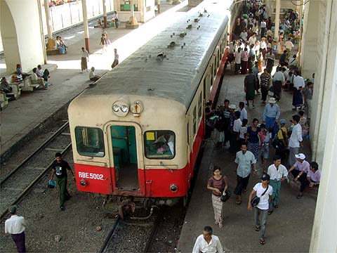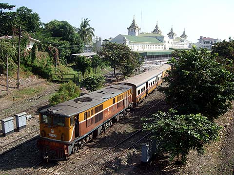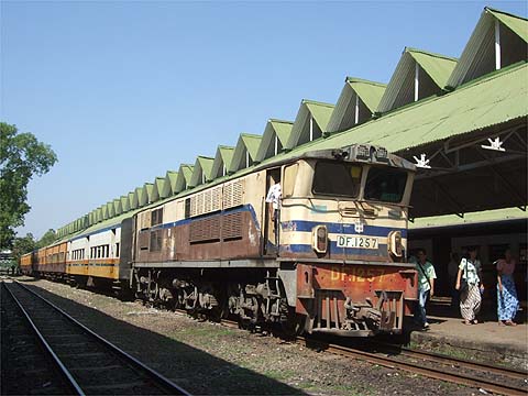 Next day, we took the train to Moulmein, the most interesting diesel we saw (DF 1200.03) is covered there, but for the sake of completeness here are three appalling 'grab shots' of DD 944 on what I think was a Yangon circular, DD 1103 and DF 1325 (the last one is, of course an Indian YDM 4). We saw not a single Chinese diesel, I would like to think they have all failed but more likely they are stationed up country near their homeland to make it easier to ship the necessary mountain of spare parts.