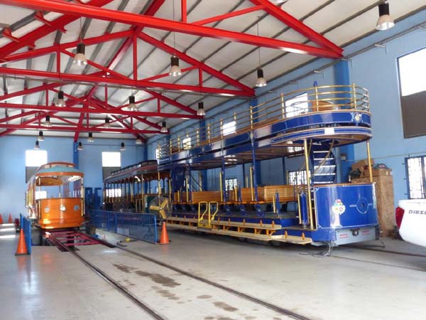 When it started to rain around noon (a rare occurrence in Aruba), the SD quickly retreated to the shed, where its batteries were soon going to be recharged anyway, followed quickly thereafter by the DD. The rain stopped a few minutes later, but operations only resumed around 15.00; shortly afterwards, it was discovered that someone had parked his car too close to the track on the separated city section, which meant that the DD was stopped for another hour or so, waiting for the police tow truck. Meanwhile the SD, which had arrived at the cruise ship terminal, was rerouted back onto the normally one-way track of the separated section;
