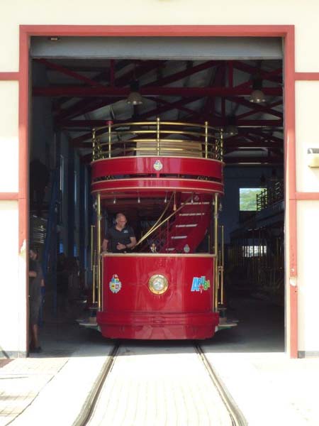Thomas Kautzor has been to several Caribbean islands to check out what is left of their railways and industrial heritage. For the full general index, see Railway Relics (and more) in the Caribbean, Thomas Kautzor reports on his visit with Torsten Schneider to Aruba, 22nd - 23rd September 2014, click here for his visit to sister island Curaçao. The third island of the former Netherlands Antilles, Bonaire, never had a railway as far as is known. His original report follows the 2025 update below. It is not for me (RD) to speculate what effect, if any, the events of early January 2026 will have on the operation and the island's economy in general. Phil Barnes was able to visit Aruba on 16th December 2025 while on a cruise and reports on what he found. As Thomas had been told, there is another double-decker streetcar in service, painted red. Here it points it nose out of the system's shed near the cruise ship terminal.