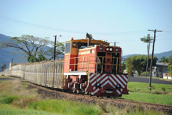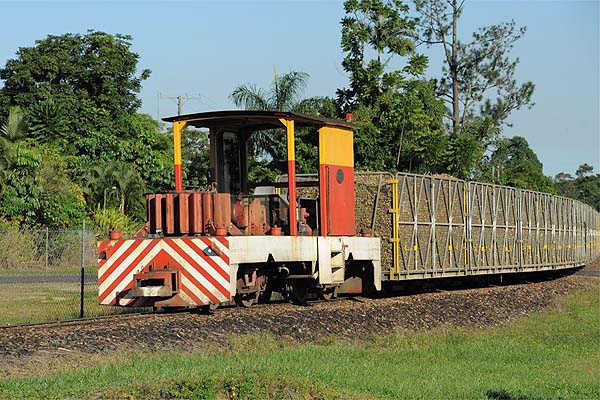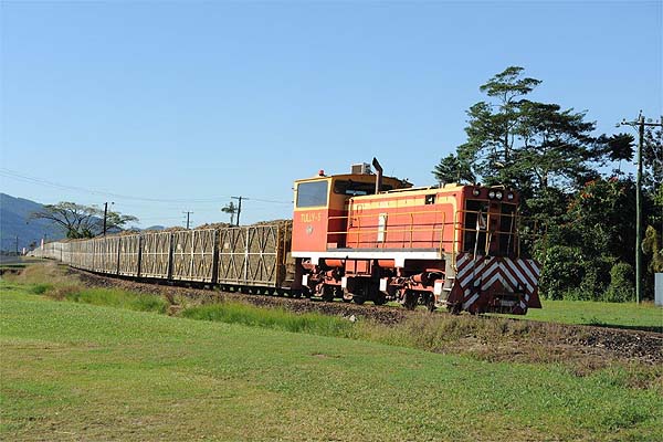 I am not sure how many places in the world you could still see sugar cane being hauled by narrow gauge diesel locomotives in 2018 but beyond Java and Fiji, the list must be quite short. I don't know if any lines survive in Cuba, I think there are a couple in Taiwan and maybe one in Tanzania. One perhaps surprising survivor is Australia where narrow gauge railways are seen as the best way to do the job. Graeme Daniel writes about a trip between 17th and 21st August. Here are a few from a recent trip to the tropical North, these pictures were taken around the Tully area, where the sugar cane harvest is well and truly on. The Tully sugar mill crushes sugar cane at a constant rate of around 700 t/hr. To serve this a 610mm (2’) gauge well constructed and maintained rail network is exclusively used, the entire rail network consists of over 200km of mostly 60lb rail for the main line, in addition there is approximately 80km of sidings and loops. The rolling stock used to carry the harvested cane to the mill are called "bins", they have a nominal capacity of 4 tonnes, these bins are paired up to form a "unit" of 8 tonne capacity, there is also a growing fleet of 10 tonne bins being introduced into the system to replace the 4 tonne bins. To haul the bins the Tully sugar mill currently has a fleet of 15 locomotives, of these there are six 40 tonne DH (Ex. QR) and six 18 tonne Com-Eng locos which are paired up as three double-headers, there are also three 8 tonne Baldwin locomotives used for maintenance to the rail network. On a day shift there are 9 locomotives in service and during the night between 5 and 7 are operating. I have also included a shot at the South Johnstone sugar mill. Tully no. 3