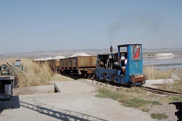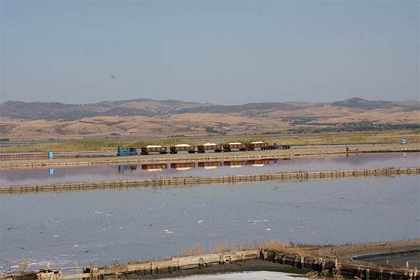 Rod Smith reports on a 16th September 2019 visit. The Burgas salt pans are on the southern side of Lake Atanasovsko to the north of the city which lies on the Black Sea on Bulgaria's east coast. The railway is also covered (but not much) in Steve Thomason's Industrial Narrow Gauge Railways (of Europe), http://www.ingr.co.uk/index.html specifically http://www.ingr.co.uk/rly_burgas.html. Google Maps marks Burgas Saltworks as being south of the point mentioned below but what looks like an industrial building is even further south (42°31'30.6"N 27°29'17.1"E). There is a 3 year old (very dark) picture of number 1 on Wikimpai http://wikimapia.org/3798776/Burgas-Salt-Works#/photo/5844933. The main entry is shown here. I am sure Rod would agree that this visit would have been more satisfactory if he had had time to research it before departure! However, that would have been no good reason to decline the invitation. I have appended some links at the end of his text. During a recent RTC trip to Bulgaria there was a “free day” in Burgas and a couple of the other participants asked if I would care to join them in a visit to the salt railway nearby. Accordingly the three of us and the local guide from the tour took a taxi out to the site of the operations. These are sited to the North of the city close to the International airport and on the banks of Lake Atanasovsko, in an area that is well known to “birders” and there are several hides close by. The railway of 600mm gauge, or thereabouts, is used to carry the salt that has been extracted from the various lagoons to a central processing plant and when we arrived a train of five wagons was in the process of being filled. An “access fee” was paid and we were allowed to wander freely but because the embankments upon which the railway runs are relatively narrow and the wagons quite wide it is not advisable to venture out from the “main land”. Google Maps gives the Grid Reference of where we got out of the taxi as 42 33’31.29”N 27 29’12.77”E In due course the train came towards us and the intention was to follow it along the road that parallels the line towards the works. However, about a couple of hundred yards after passing us the rear bogie of one of the wagons became badly derailed and that effectively put paid to the action. Nevertheless we followed the line south to a point just beyond where it and a disused standard gauge line cross a small river. At this point there is a barrier across the road although the immediate seaward side is busy with bicycles and pedestrians. After some discussion we were allowed through and followed the line further south until the road expired and we were obliged to turn around. (It appears that the pedestrian and bicycle access continues into Burgas but road access is only possible via the longer route that we took.) We saw no sign of any other trains, locos or where the salt is unloaded from the wagons but there is quite a large complex of buildings and all such activity must have been in that area. Within this area beyond the barrier there is a specific section given over to a mud-bathing and many people were using this and applying the black mud liberally. We continued our wait in a beachside café and as still nothing happened we then returned towards the loading area in the hope of meeting the re-railed train. However, there was no sign of activity and in order to prevent the taxi bill becoming too great we returned to the city. The only loco we saw carried the number 5, and was an otherwise completely anonymous 0-4-0D. There would be numerous photographic possibilities if the train had run, though of limited variety. Pictures on the web suggest the railway operates tourist trains