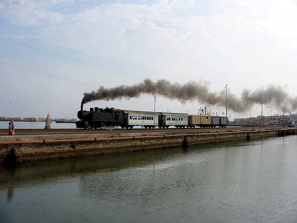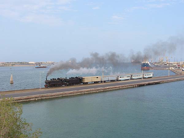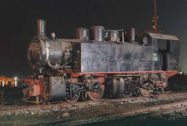 The site of the old station at Massawa has largely been cleared and the line diverted round the back of a tower block. The locomotives spent the night in the open (and the loco crews slept out with them!) - this is a conventional photograph, I haven't sorted out night phootgraphy on the digital camera yet!