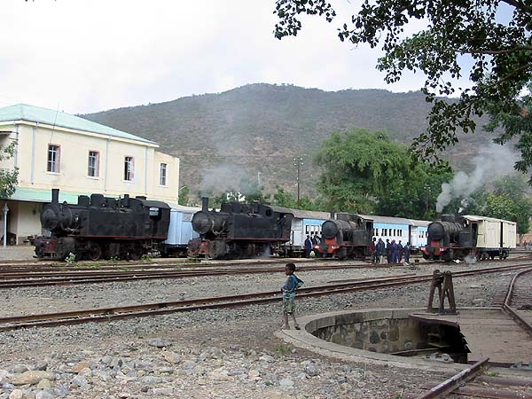 On one afternoon we had a line up of the four active locomotives in Ghinda station. As seems to be traditional at Ghinda it was cloudy.