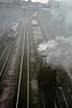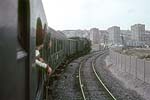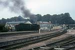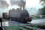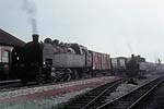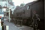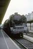 First night was spent at Rouen. One of my companions was a culture-vulture, as well as an impassioned gricer: I recall a little time being laid hold of while we were in the city, to “do” its outstanding non-rail features. We called in at the cathedral, and at the spot where Joan of Arc came to her sticky end – at the behest of this gentleman, without doubt. The other two of us would, left to our own devices, have for sure skipped the cultural stuff, employing the rationalisation that “all that, will still be around in years to come – the steam won’t”. A long journey (planned to be flexible as to exact routing, depending on how things played steam-wise) scheduled for the next day, meaning an early start from Rouen’s main station – where some 141R activity was happening, but not most-immediately for us. The railcar scene once more, for the shortish hop to Serquigny – perhaps with a change en route: memory continues largely to frustrate, for this stretch of the expedition. Transfer there to a diesel-hauled working on the Paris – Cherbourg main line, as far as Caen. Recollections remain fragmentary: the odd shard thereof surfaces, of a little steam freight action observed on this section, and of a large dump of withdrawn steam locos at Mézidon. There stays more clearly in memory, the perceived idyllic beauty of the Normandy countryside – seemingly much less visually fouled-up by mankind’s doings, than its equivalent back across the Channel. Also, lots of farming action involving horses, not internal combustion – comparable to the same witnessed on grices of Poland up to a quarter-century later; though from what I gather concerning France, this was a scene which did not last there, for many more years. Change at Caen, onto the long branch-line chain then offering a (sparse) passenger service southward – a situation to come to an end not many years thence, though tourist workings are understood still to take place at times, on parts of these lines. Railcar of course, southwards through the beautiful hilly area of “Norman Switzerland”, to Flers – junction with the secondary main line from Paris to Granville. In summer 1966, long-distance passenger over the whole of this line had been in the hands of the SNCF’s post-war compound 2-8-2s of class 141P. We hoped that this would prove still to be the case; if so, we’d travel west from Flers behind steam, and subsequently head further westward into Brittany, “whatever way”: should this turn out to be in the cards, life seemed likely to get complicated as regards train schedules and connections – but we reckoned that that would be a price worth paying, and we’d handle things accordingly. We were spared from having to face the potential conundrum, but not in any desired way: modernisation had rolled onward, and main-line passenger was now found at first hand, to have gone diesel. No reason thenceforth, to travel toward Granville: our route Brittany-ward would be no more direct, but simpler in rail-travel terms, involving the next branch-line railcar working southward from Flers, to Laval. This service would not leave for some two hours; but sitting in the sunshine over beers at a table on the platform, outside the station café, made the wait pleasant enough. More pleasant yet, was the arrival on the main line, of a 141P hauling a long train of bogie iron-ore wagons; it paused briefly in the station – occasioning a flurry of getting to picture-taking spots – then took its train onwards. It was most gratifying to find these attractive locos still seeing use hereabouts, even if only on freight duties. The Flers – Laval run recalled as a couple of sunny afternoon hours covering the 100km-odd distance: delightful rural branch line thorough beautiful countryside, numerous stops at pleasant country stations – steam haulage would have been better still, but “what do you want, eggs in your beer?” A call at the hill-bottom station of the lovely hilltop town of Domfront; and arrival at last, at Laval on the Paris – north Brittany main line. Short wait there, for a westbound express, which took us rapidly with electric traction to Rennes, where the wires ended. A diesel loco took over; there followed an early-evening run through more rural pleasantness, bringing us at last to Guingamp. Half a year earlier, the last stage of our day’s journey would have featured a metre-gauge railcar of the Réseau Breton taking us from here on that gauge, to Carhaix, famed for the preceding seventy-odd years as the RB’s “Crewe”. Now, though, the system’s Guingamp – Carhaix line had been standard-gauged; most of its other metre-gauge sections had been abandoned, and what little of them still ran, were about to meet that fate. So it was a standard-gauge railcar, albeit of a quirky and elderly appearance (leased from the SNCF railcar fleet) which brought us, a little after nightfall, into Carhaix – where we repaired to the station hotel, and shortly after, called it quits till the morrow; it had been a long day. We spent two full days based at Carhaix. One was given to the RB’s standard-gauge part, which was seen to have a likely future; the other to its metre-gauge part, which most assuredly had none: when we were there, the only remaining metre-gauge action involved daily freight trains (steam-worked: the RB had never used diesel locomotives) on the lines east from Carhaix to Loudéac, and west to Châteaulin – and abandonment of those workings, w.e.f. September 21st, was only weeks away. On our first morning, we presented ourselves at the railway’s central offices at Carhaix, and supplicated permission to travel on the freights. On the way from the station hotel to the offices, there was an impressively steamy scene to be taken in: a couple of standard-gauge class 141TC 2-8-2Ts (on lease from the SNCF), to attend to freight doings concerning the Guingamp line; and in steam on the metre gauge, two M