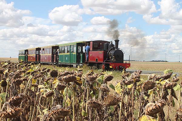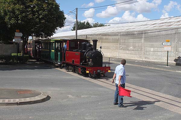 The original report here was uploaded in 2009 although it referred to a 2002 visit. Thomas Kautzor was here briefly on Sunday 8th September 2013 and has sent some pictures of the first afternoon train at Pithiviers. MTP 2-6-0T 9 LES FONTENELLES (La Meuse ) was in charge of the train for the day. The box car at the rear is the bar car and was taken off the train at Bellébat. The standard gauge private siding which crosses the line just outside Pithiviers is now disused, after the fertilizer factory was closed.