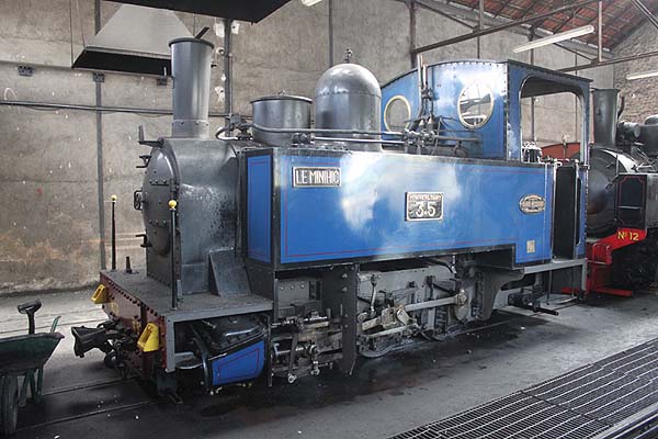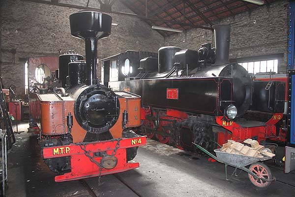 In the shed, 0-8-0T 4 (Henschel 14923/1917, ex Sablières de Bourron No. 10, ex HFB 993), 0-8-0T 12 (SAFB 2843/1945, ex TPT 4-12) and 0-6-0T 5 LE MINIHIC (ANF 282/1902, ex TPT 3-5, ex Paramé-Rotheneuf) are all three operational.