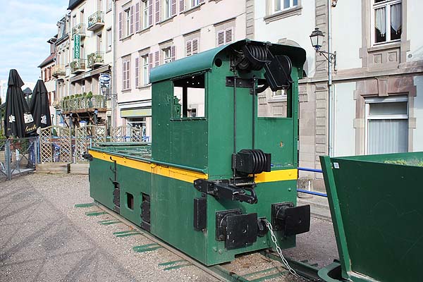 TE 202 (SW 1934, 15 kW) is plinthed next to a lock in the center of Saverne, together with a four-wheel wagon.