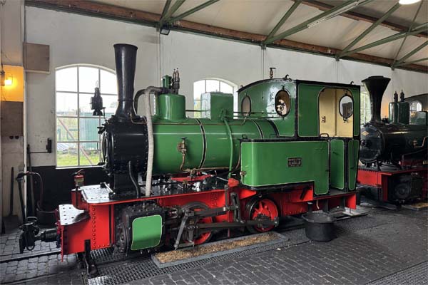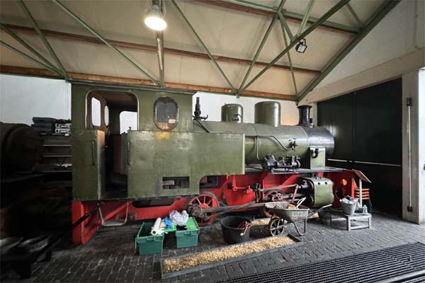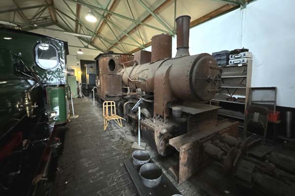 Back in 2007, James Waite visited what was then known as the Narrow Gauge Railway Museum at Valkenburg, and is now known as Stoomtrein Katwijk-Leiden: He returned on 18th October 2024 and found that the museum and railway has developed considerably since then. To the casual visitor the most obvious change is that the running line now encircles the lake, thanks to the construction of a bridge although I understand that it is not in regular use. Click here for the rest of James' visit covering the steam tram locomotives in the museum. Apart from 'Sivolde' and a few other locomotives which live in the museum, nine other locomotives including 607 and the other five in working order live in the engine shed. 214 is a 700mm gauge Du Croo & Brauns (see below) 0-4-4-0T Mallet (159/1928) which worked for many years at Ngadirejo sugar mill south of Kediri in East Java before being transferred to Peasntren Baru just east of the city. It is on loan from the Indonesian government and will need a major overhaul if it is ever to run again. It is missing many parts and the boiler is unfit for further service.