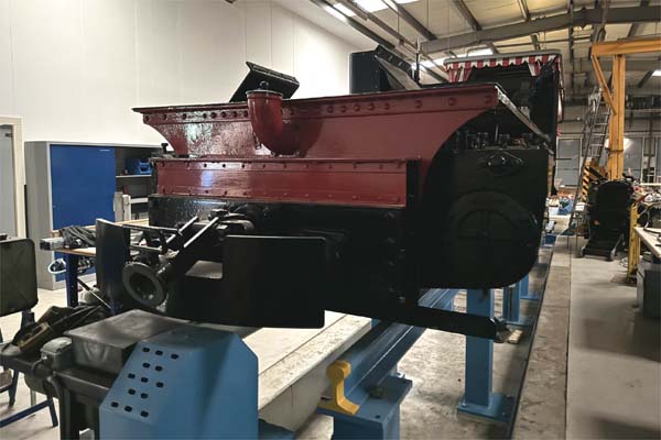 was auctioned off. This coach in the workshop with the curtains comes from the Heidestein estate railway in the hills east of Utrecht. This place with a manor house was purchased by a wealthy gentleman who had relocated back to the Netherlands from Java with his family after his daughter became ill. He was an engineer by training and built a railway, mainly for pleasure, through the estate. It was worked by a O&K diesel. This compressed air locomotive is a Pz type (45HP) built by Jung. The society has another such locomotive, a 570mm gauge Schwartzkopff. Gerard de Graaf informs me that this was running at Oranje Nassau Mijnen in Heerlen. Later it came in parts to Steenkolenmijn Valkenburg (L), where it remained in the yard till we collected it. It is expected to be restored in the near future. Finally, these are the frames of O&K 0-6-0T 7 'J. Pellenbarg' in the workshop, apparently from Lambert Frères who ran quarries in Northern France. James does not know if it has any connections with industrial railways in the Netherlands but Gerard de Graaf adds this minor connection, "A sister loco has been running for contractor H.J. te Siepe in the Netherlands." |