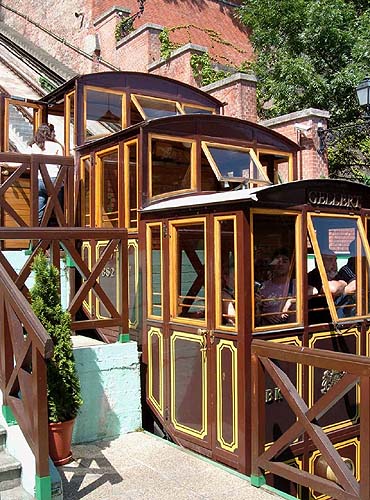 The standard gauge (Buda) Castle Hill Funicular originally dates from 1870, it was destroyed in World