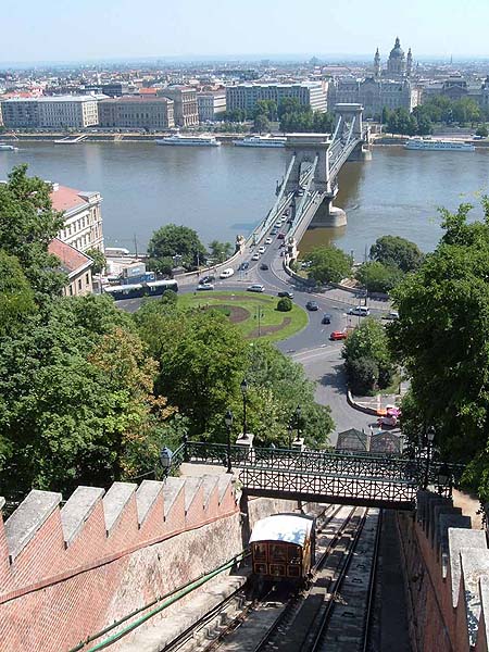 pictures the views from the car over the Danube and over Pest to the east are spectacular. As with most funiculars travel in the lowest compartment of the car for the best view. Castle Hill has a wealth of interesting buildings and inexpensive eateries. It's also mostly pedestrianised, an oasis of peace and quiet after the frenetic levels of traffic and suicidal driving styles prevalent in the rest of the city.