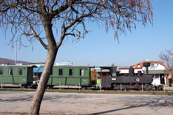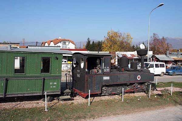 Ian Cruttenden advises (5th July 2022) that 99.4.025 Has moved to Kicevo, James was unable to find its location in 2008. (https://www.google.co.uk/maps/@41.5125813,20.9521721,3a,37.5y,278.12h,105.89t/data=!3m6!1e1!3m4!1soDNw8d1QJ5ZSkXzs3vFqcw!2e0!7i13312!8i6656) However, Thomas Kautzor says that this is actually 053 with a fake plate. The real 025 is in George Petrov Park in Skopje near the old 600mm gauge station where he saw it a few months ago. For information see http://www.heeresfeldbahn.de/lokomotiven/deutschland/brigadelok/228.html (Link dead by May 2023) This photograph, taken on 23rd June 2022, was a 'grab shot' from a passing bus: James Waite reports on his November 2008 visit: The three photos of the Feldbahn loco (JZ 99.4-053, Henschel 15079/1917) and train are at Kicevo in the west of Macedonia. They're relics of the old 600mm gauge Ohrid railway which originally ran for more than 200kms between Skopje and Ohrid, a town on a lake on the border with Albania, built by the German army during WW1. It was cut back later to Gostivar, about half way, after the standard gauge reached there and closed altogether in 1966. Judging by the spectacular mountain scenery through which the road to Kicevo runs this must have been one of the great scenic rides of Europe. Kicevo is now the terminus of the standard gauge line. One of the destinations on offer in the booking hall was Chicago, appropriate as this was the day of the US election! There's a second ex-Ohrid railway Feldbahn loco preserved in Macedonia - 99.4.025 (Vulkan 3129/1917) which used to be preserved at Lisice depot. It moved some years ago to the site of the western station on the old Pioneer Railway, which only ran between 1948 and 1959, and which also worked by Feldbahn locos. However, it's no longer there and I didn't manage to find out where it is now (It's in Kicevo see 2022 update). Finally the woebegone 760mm gauge 83 class (missing its chimney) is in the grounds of what used to be a railway training school in the south eastern suburbs of Skopje, close to the main loco shed. It was a gift in the 1980's from Lajkovac depot near Vreoci, the last JZ depot in Yugoslavia operating the 83 class. There were never any 760mm gauge railways in Macedonia. |