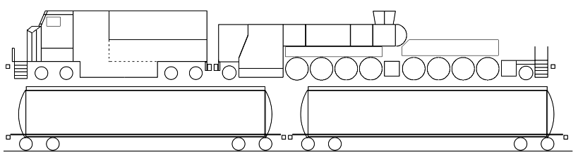 The 2-8-8-2 is approximately 118 feet for the engine and tender and another 120 feet for both water tank cars. Drawbar pull of 2-8-8-2 and ES44AC